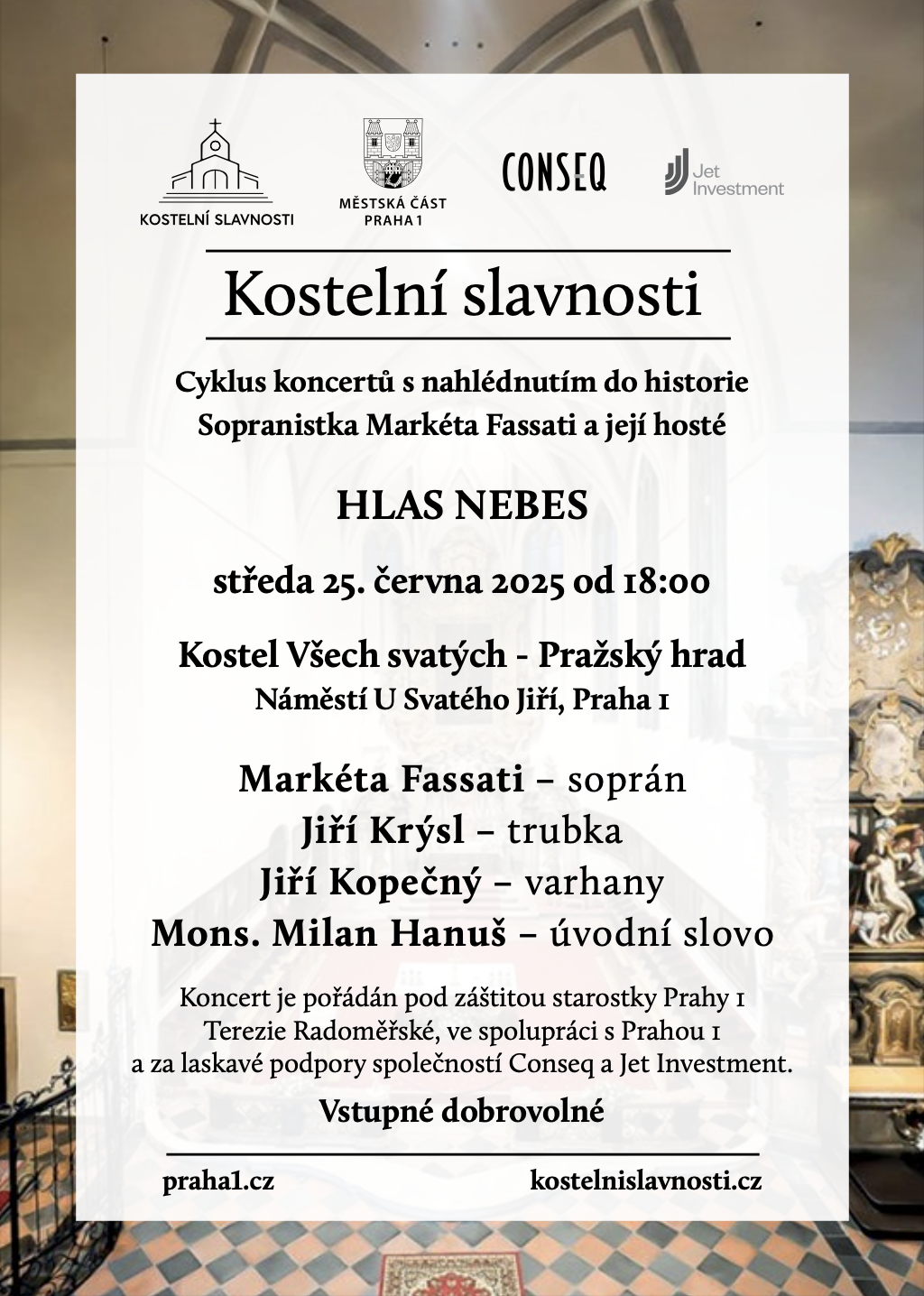 Koncert je pořádán pod záštitou starostky Prahy 1 Terezie Radoměřské, ve spolupráci s Prahou 1 a za laskavé podpory společností Conseq a Jet Investment.